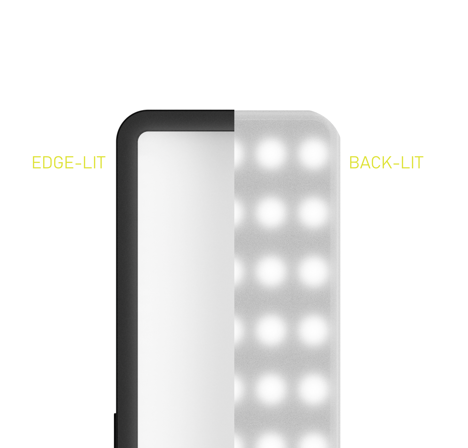 3 diffusion layers convert the harsh light from the edge-lined LEDs into one super-soft beam.